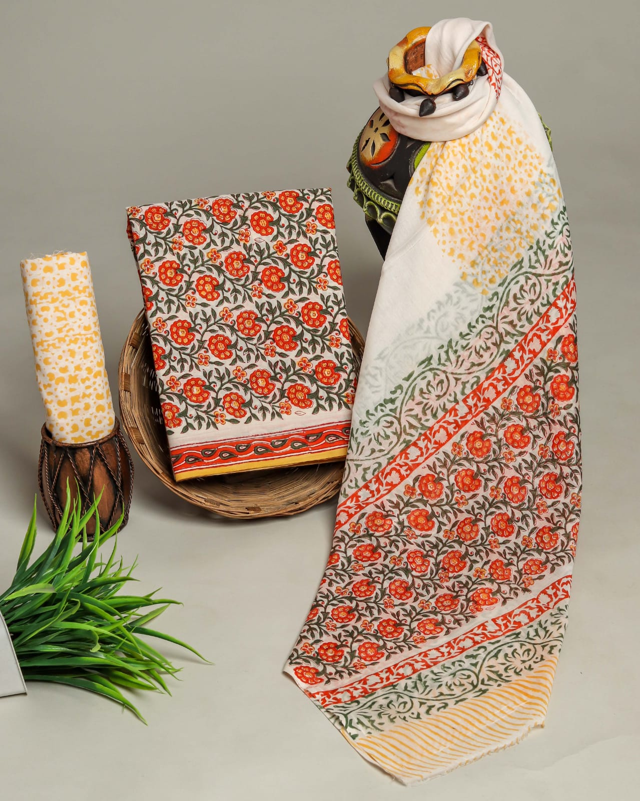 Pure cotton hand block printed suits with cotton dupatta