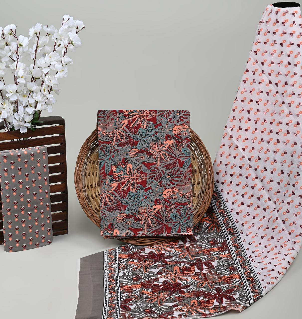 Pure cotton hand block printed suits with cotton dupatta