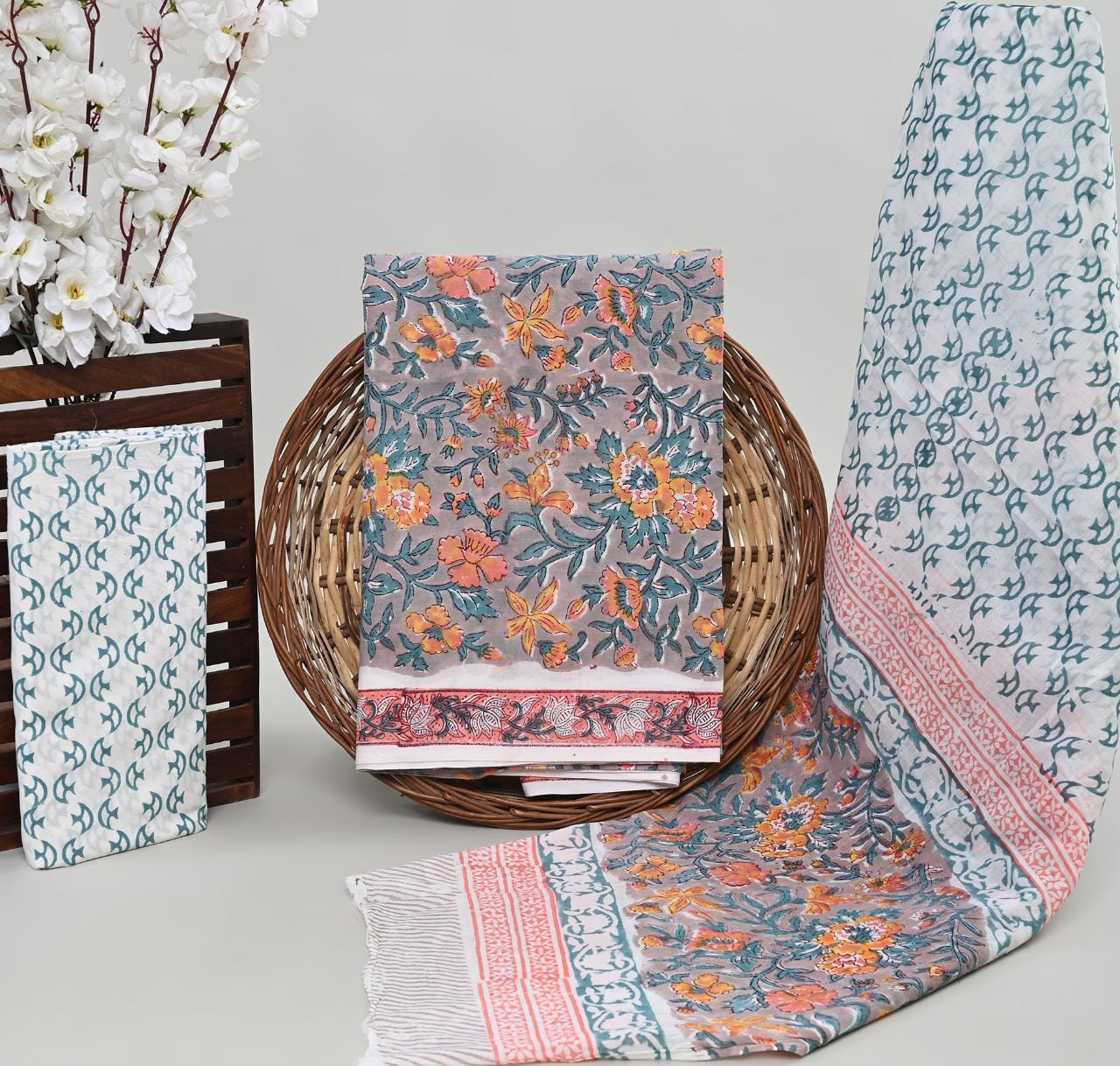 Pure cotton hand block printed suits with cotton dupatta