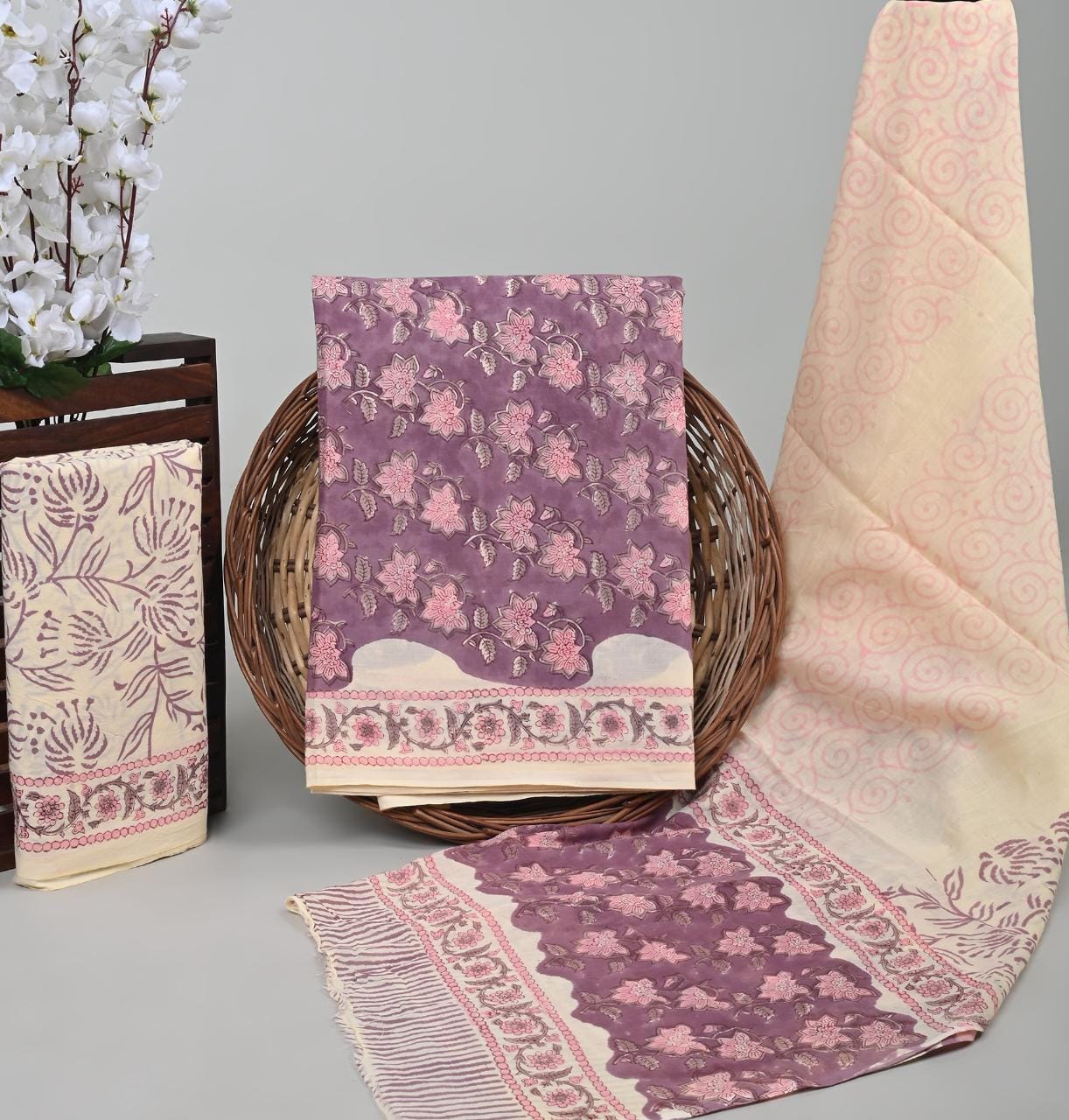 Homecotton suits with cotton dupatta Pure cotton hand block printed suits with cotton dupatta