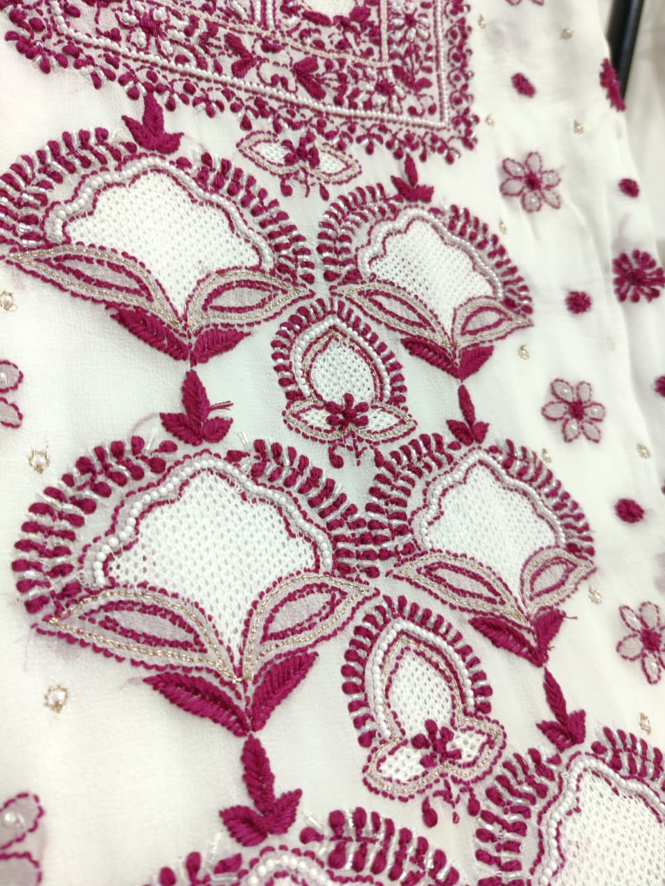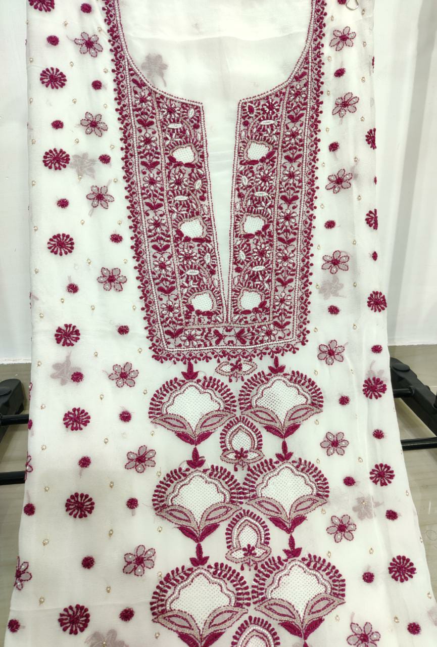 Pure Georgette Kurta dupatta set with Finest Chikankari Handwork along with pearl cut-dana work done as well.