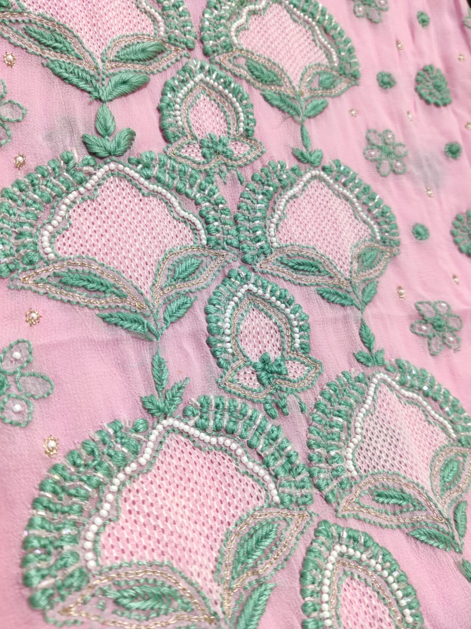 Pure Georgette Kurta dupatta set with Finest Chikankari Handwork along with pearl cut-dana work done as well.