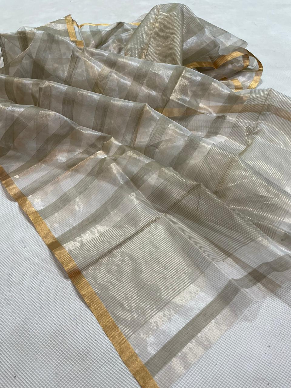 Pure handwoven Fancy Chanderi stripe tissue dupatta