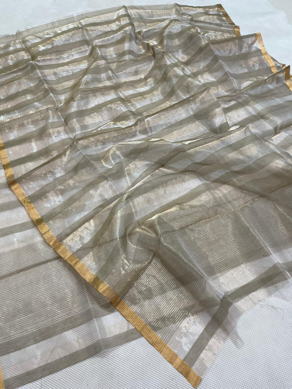 Pure handwoven Fancy Chanderi stripe tissue dupatta