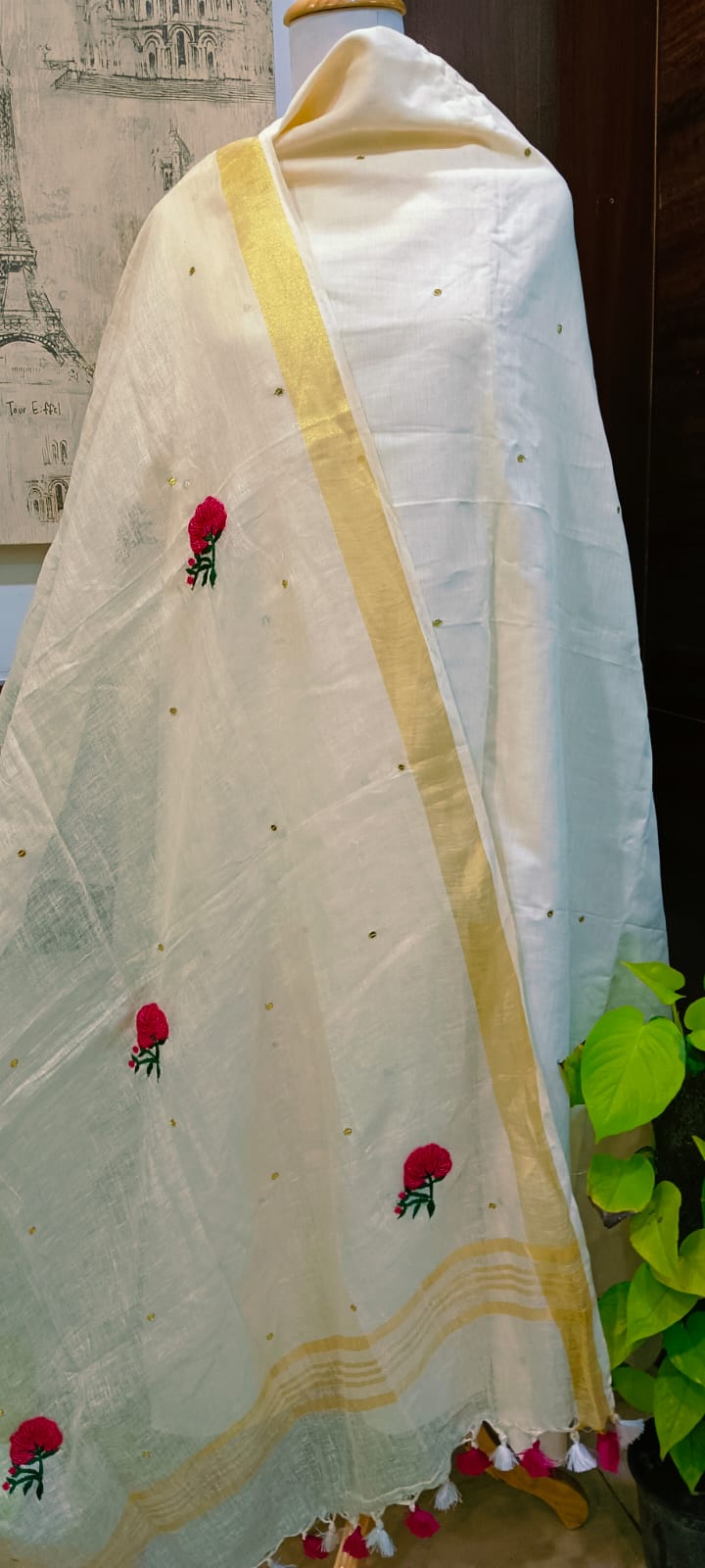 Dupatta – 2.5 mtr Hand women with Flower Motifs In Stone Work With Red Color