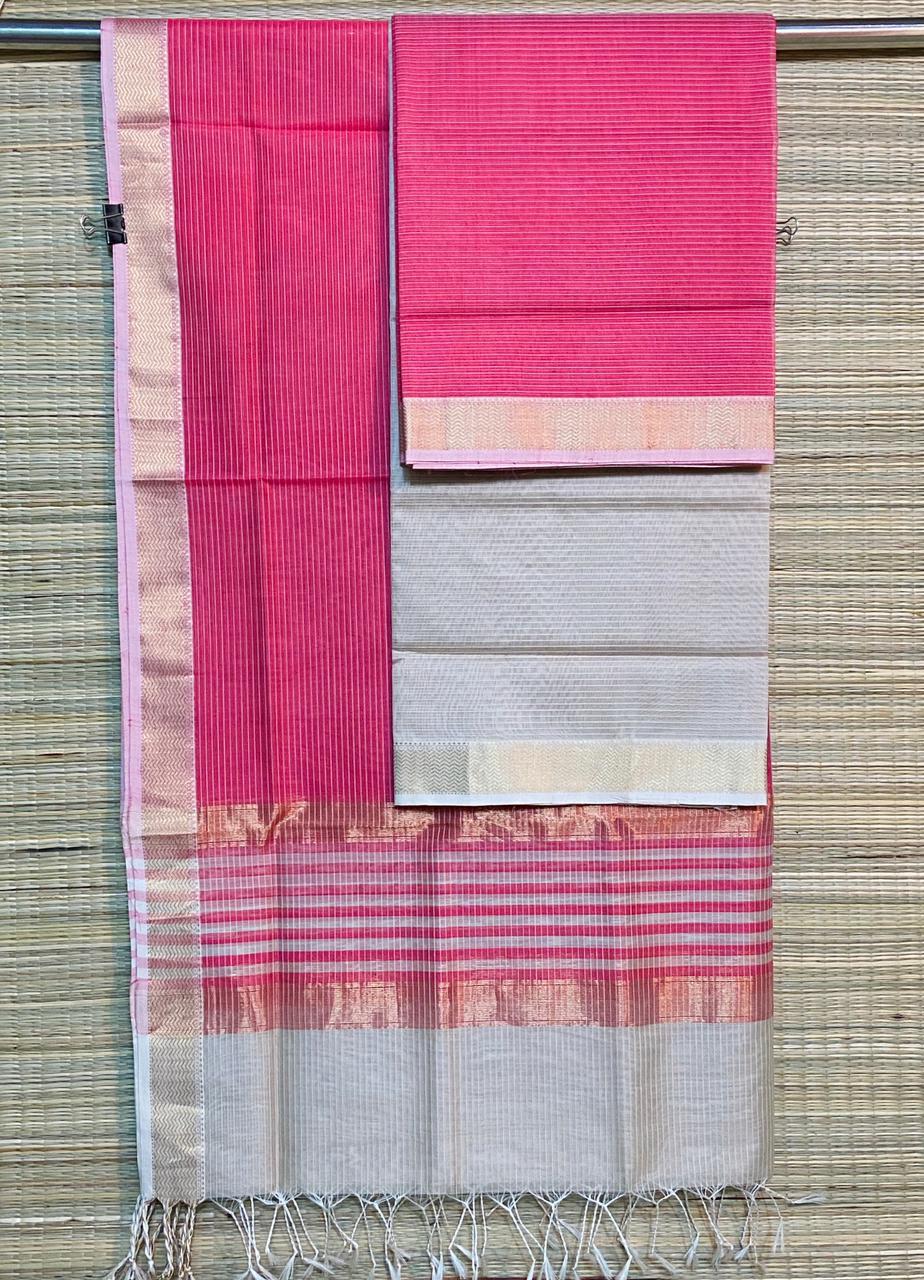 HomeChanderi Silk Suits Pure Maheshwari Dress Material With Golden Zari Border