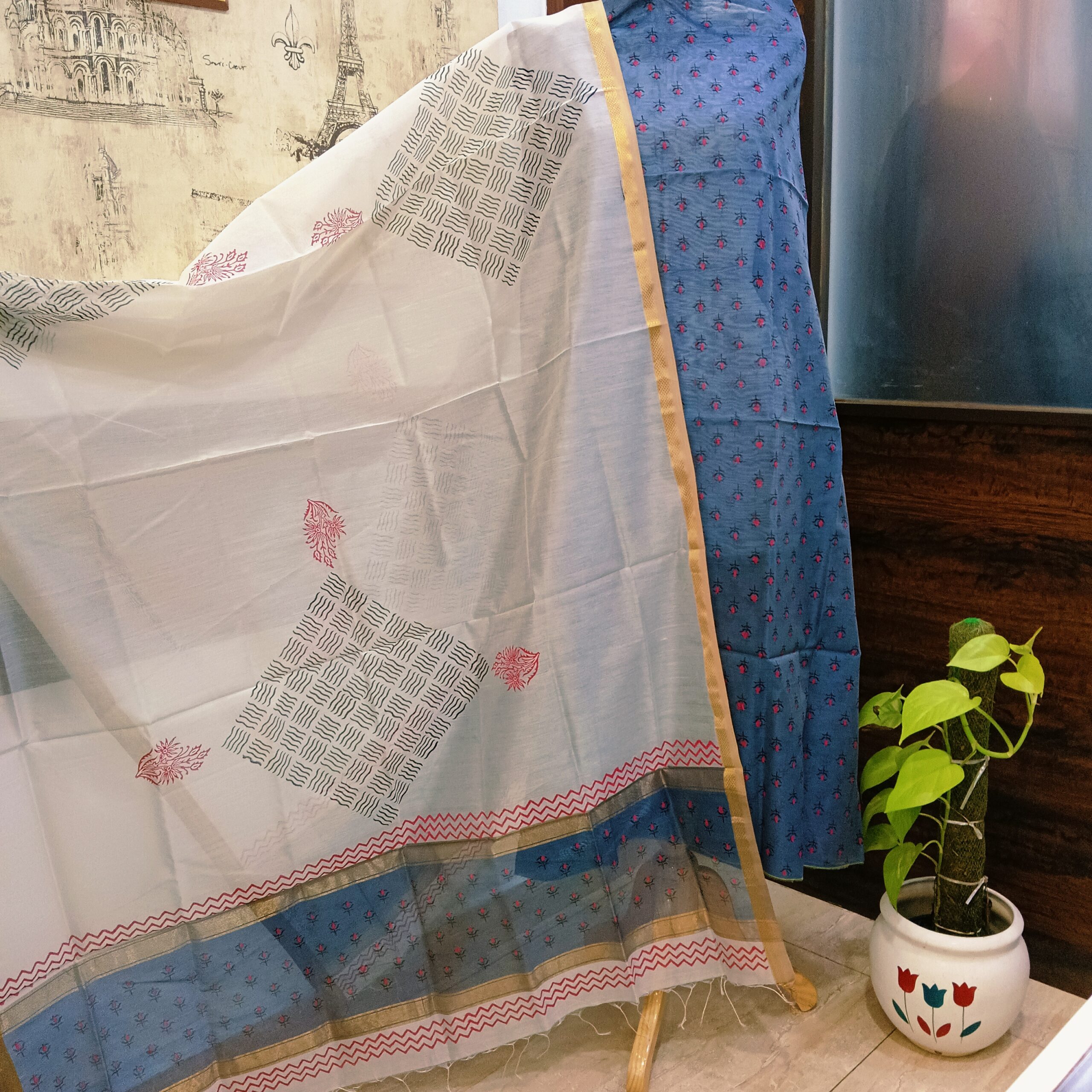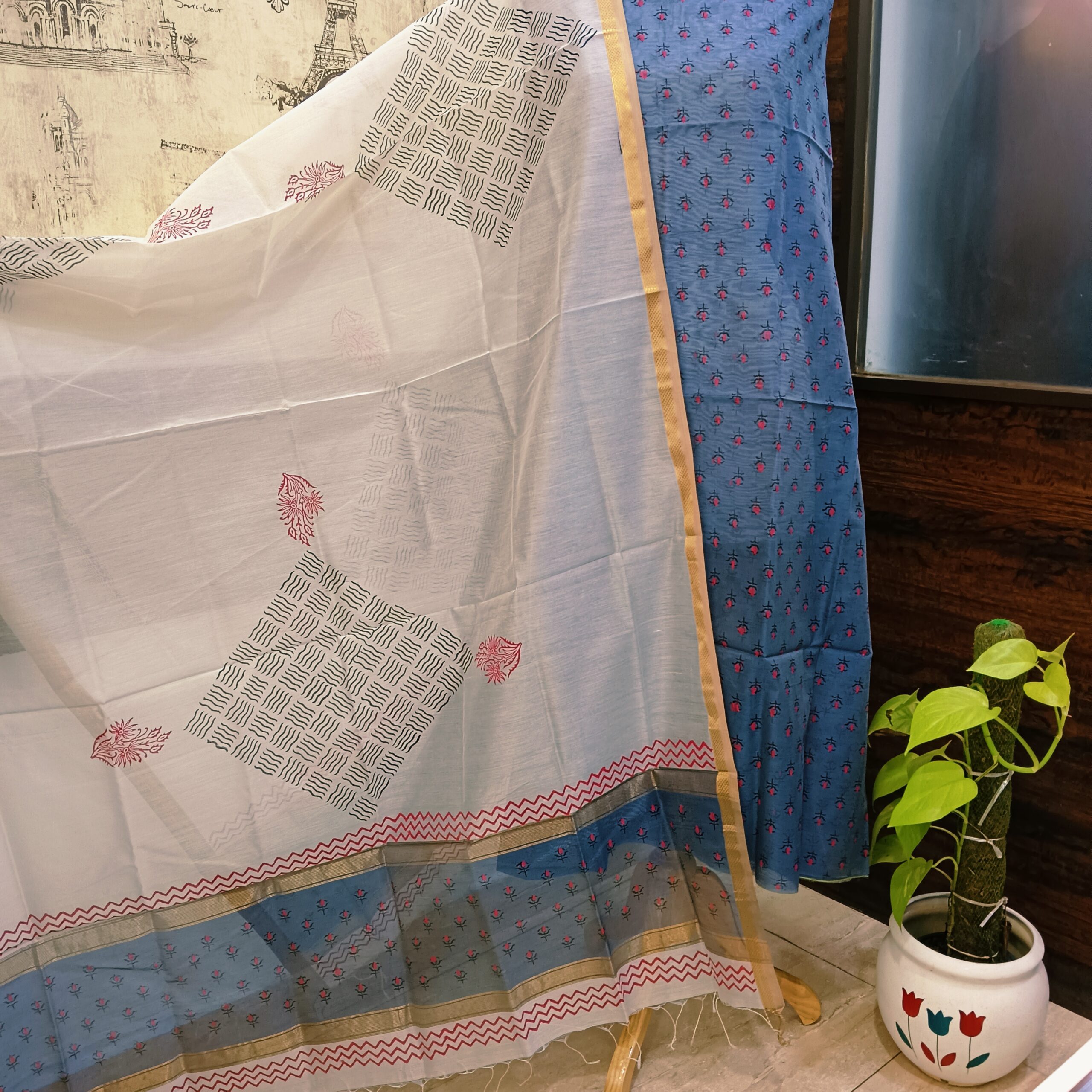 • Hand block Maheshwari silk suits