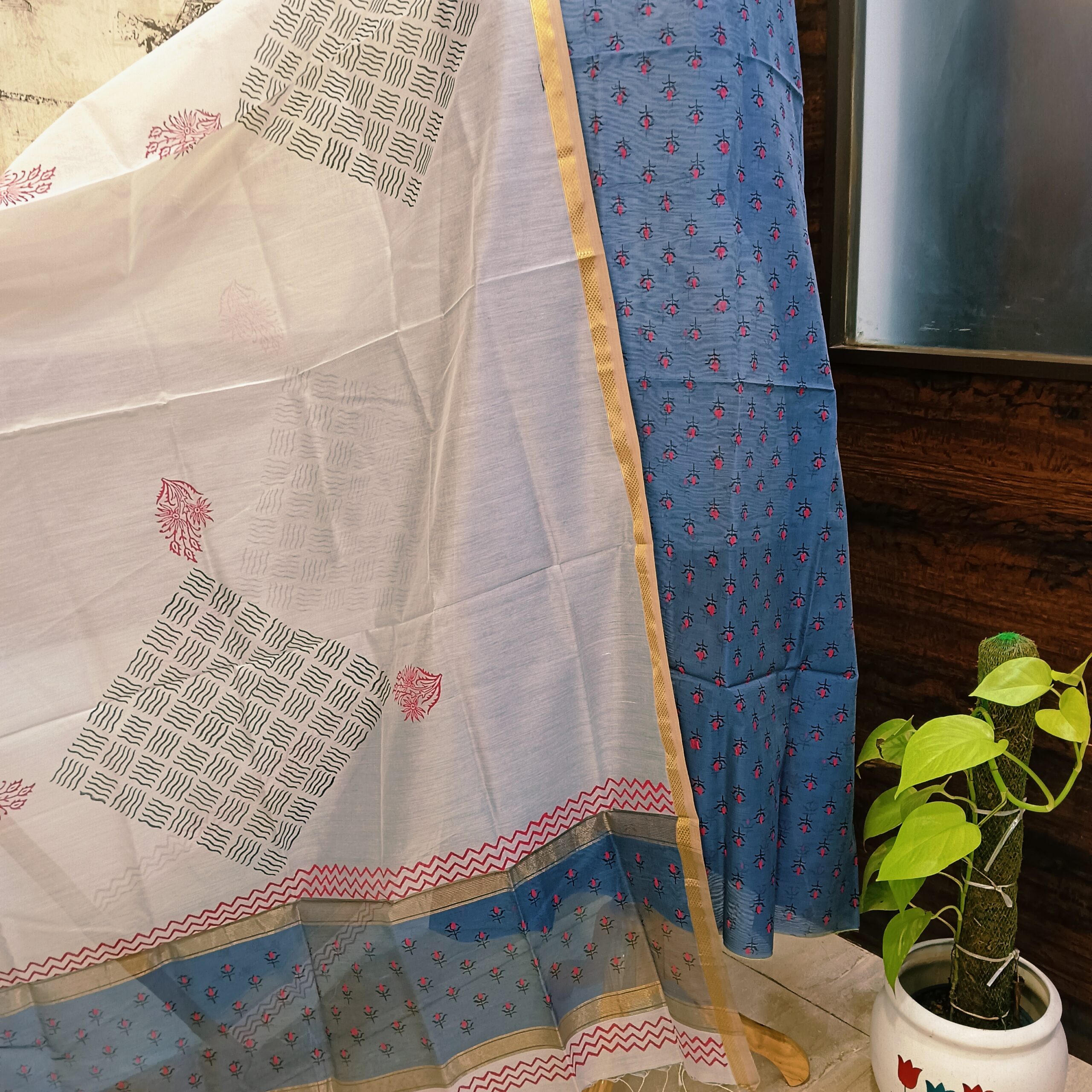 Jackyll Special handblock printed pure cotton suits with kota doriya dupatta.