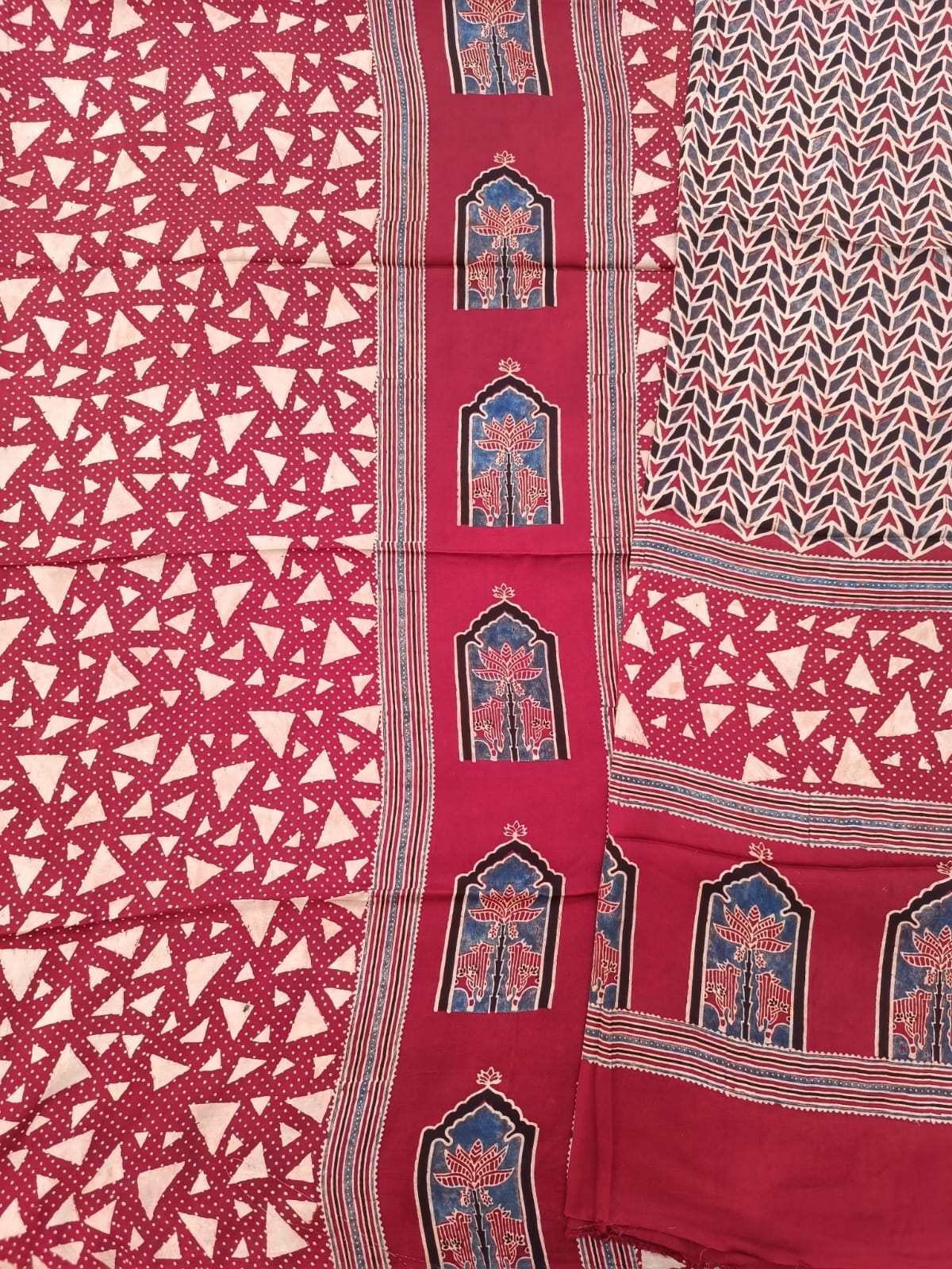 Pure modal silk ajrakh natural 2 pcs set, Top, Pant & Duppatta
