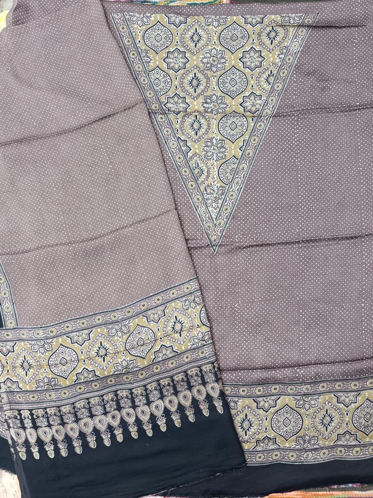 Pure modal silk ajrakh natural 2 pcs set