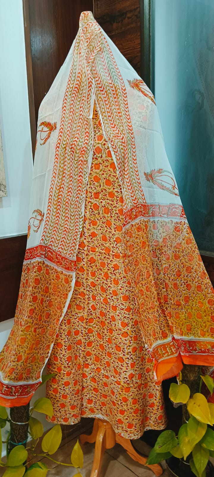 Stiched Anarkali Suits With Kota Doria Dupatta