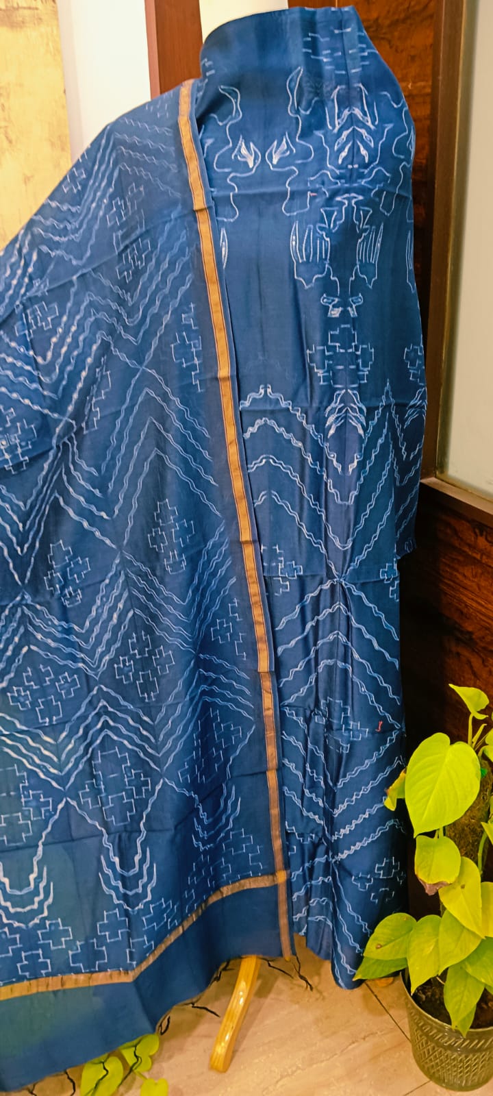 Pure Maheshwari Dress Material With Golden Zari Border