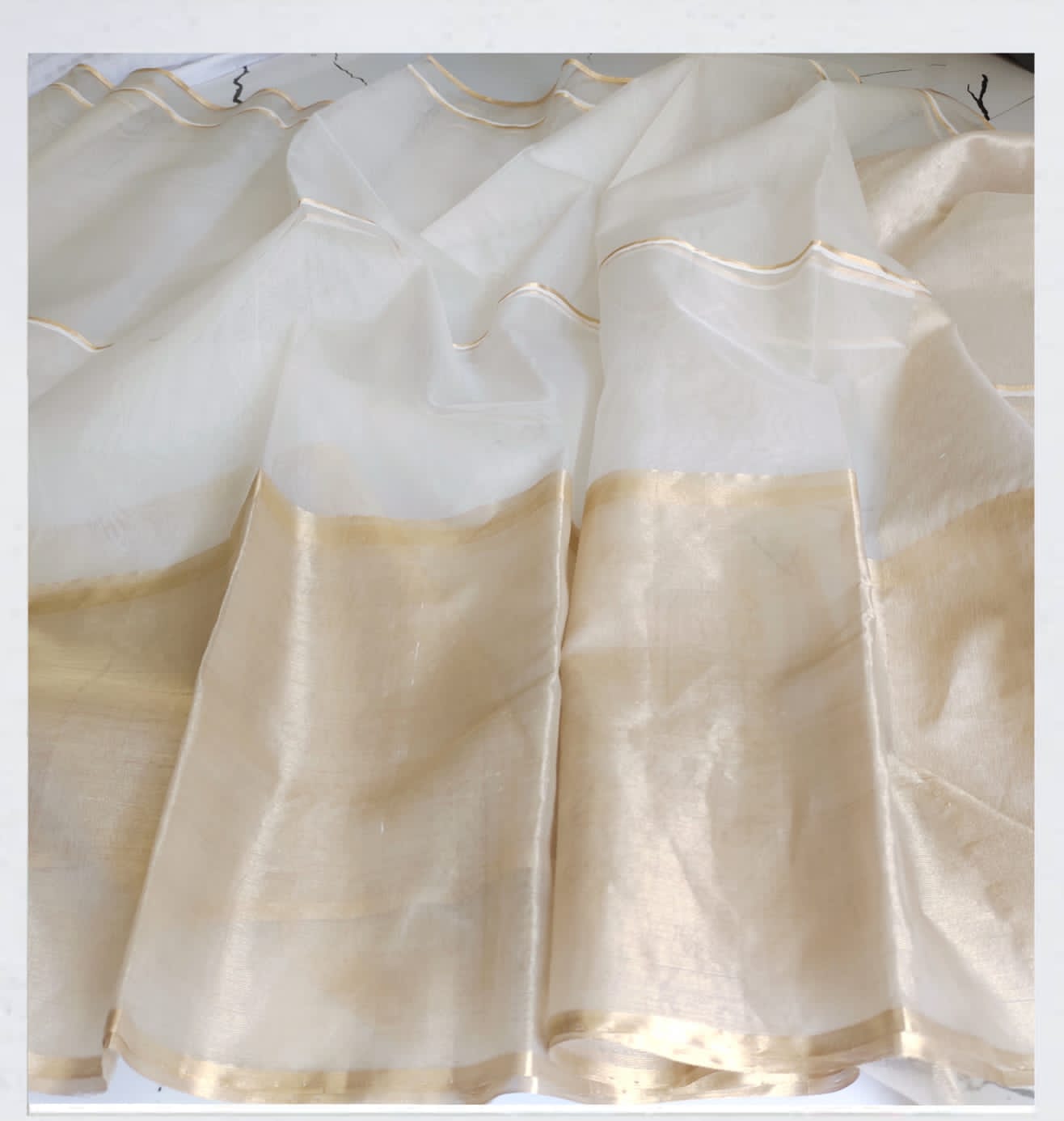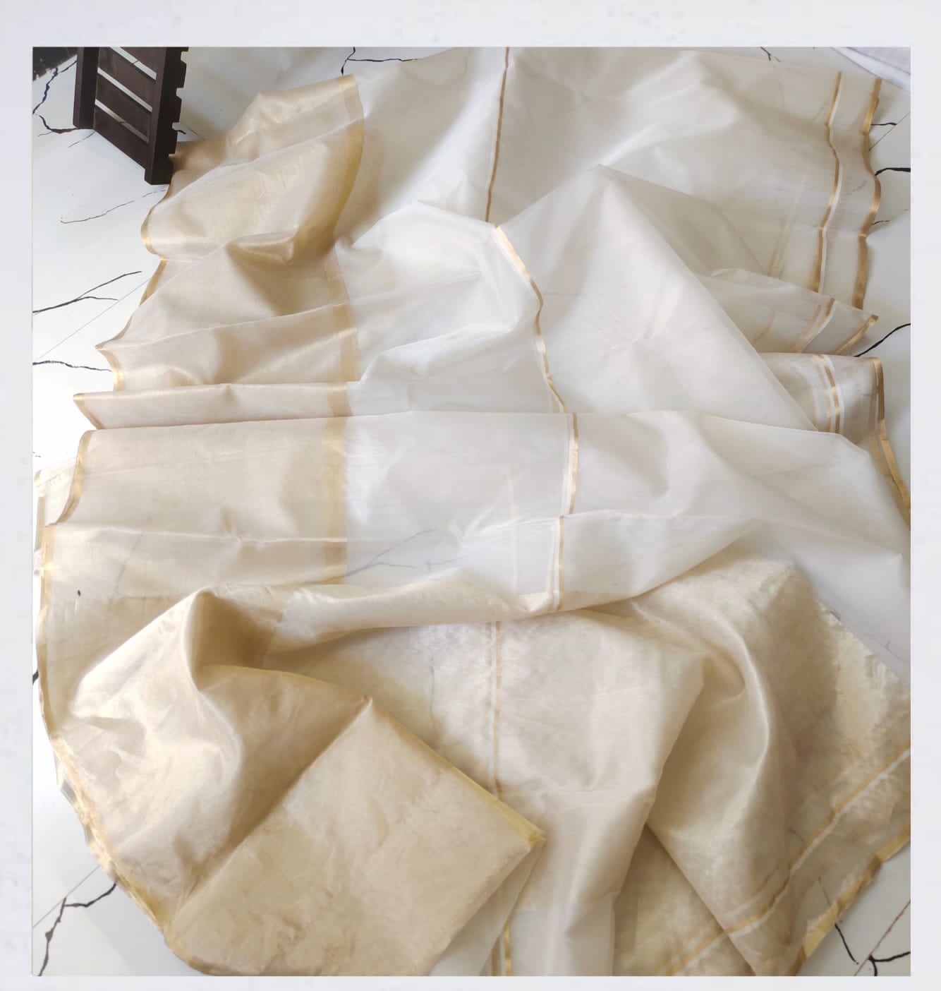 Silver golden Zari buta tissue silk Chanderi saree