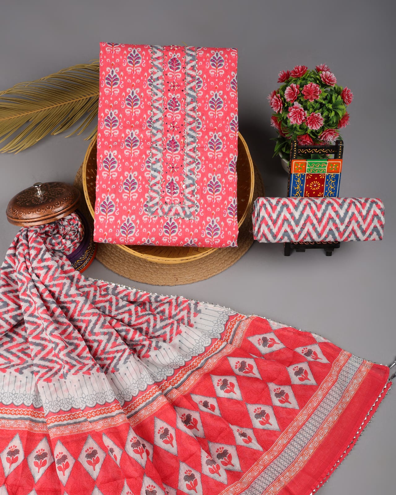 • Pure cotton suits with chiffon dupatta