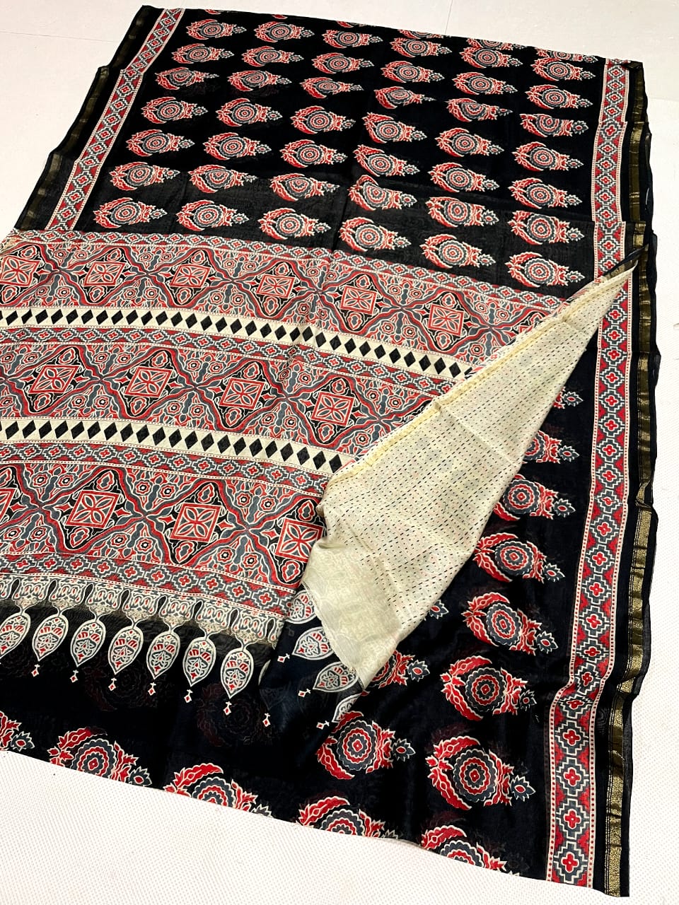 Traditional Ajrakh Print and Bagru Print Chanderi Saree