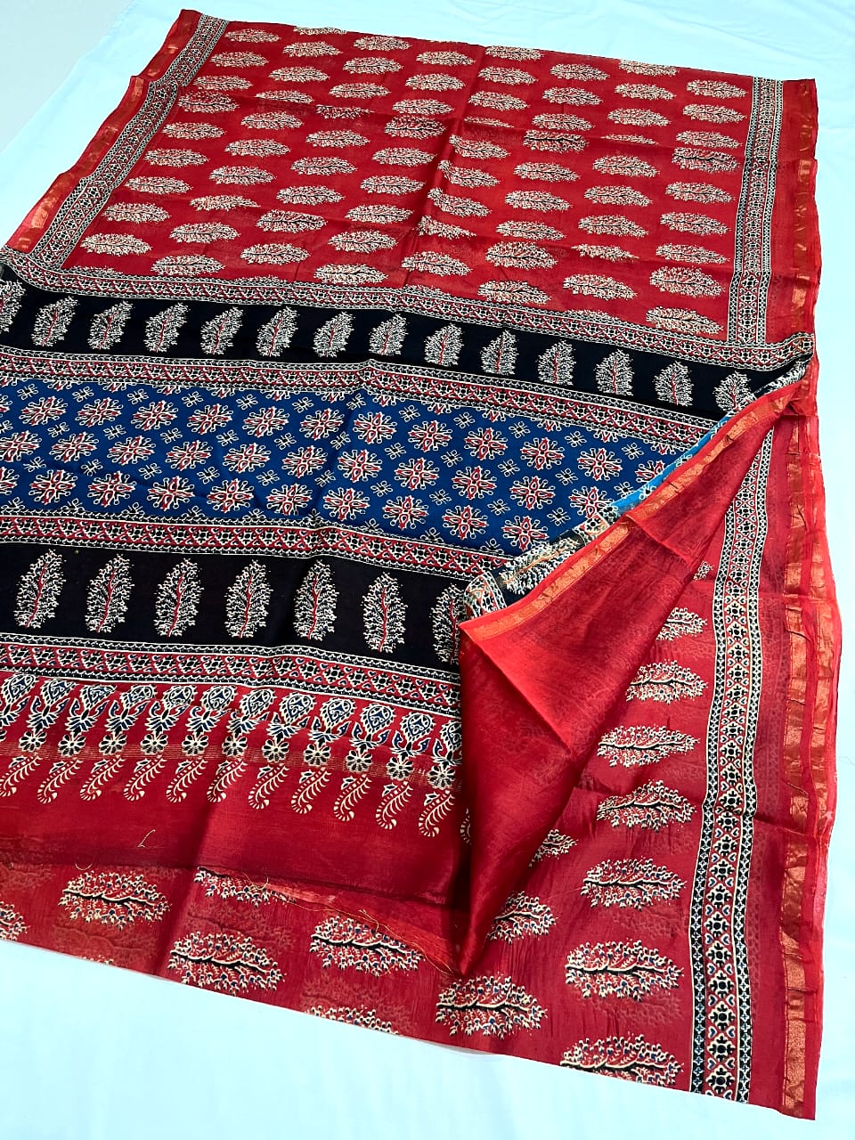 Traditional Ajrakh Print and Bagru Print Chanderi Saree