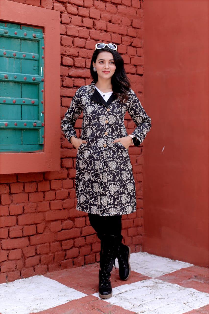 Traditional Bagru Hand Block Printed long Jacket with Two pockets ₹ 3010.00 Original price was: ₹ 3010.00.₹ 1892.00Current price is: ₹ 1892.00.