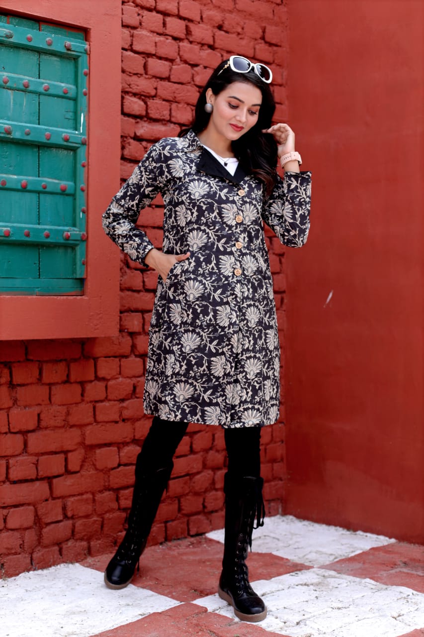 HomeWINTER JACKETS Traditional Bagru Hand Block Printed long Jacket with Two pockets