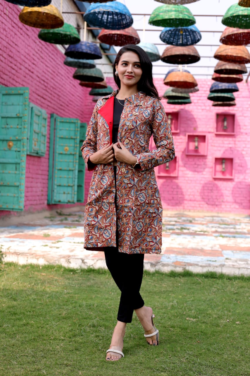 Traditional Bagru Hand Block Printed long Jacket with Two pockets ₹ 3010.00 Original price was: ₹ 3010.00.₹ 1892.00Current price is: ₹ 1892.00.