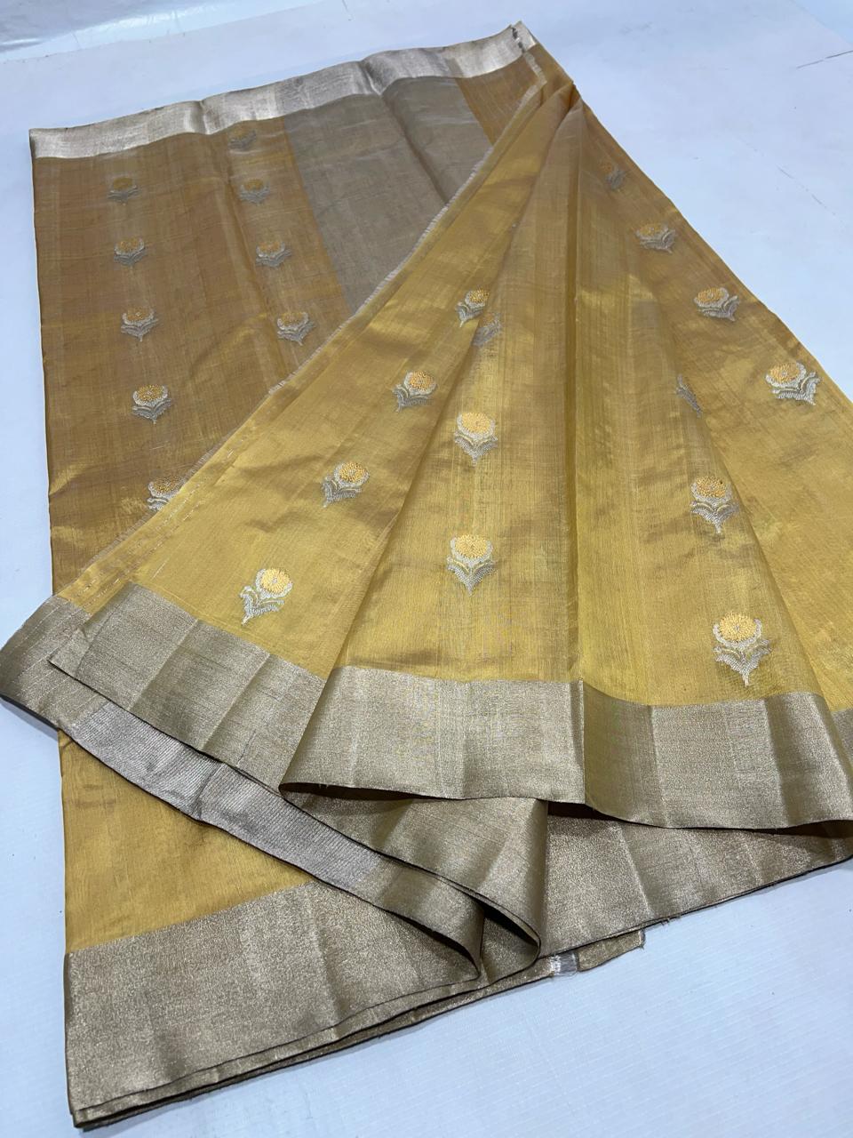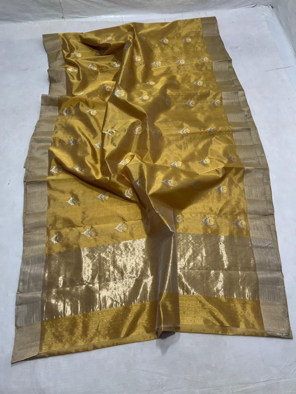 Pure Golden Silk Tissue Saree with silk mark label