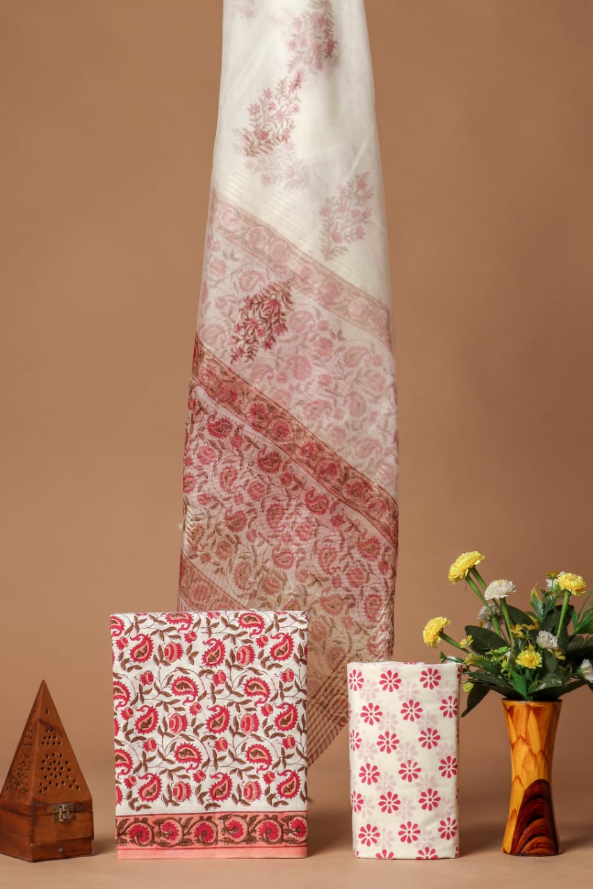 • Stiched hand block suits with kota dupattaStiched hand block suits with kota dupatta