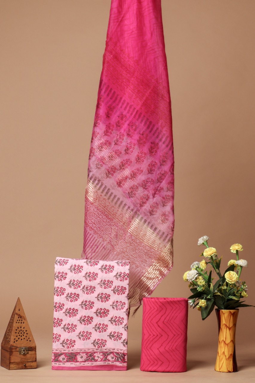 • MULBERY PRINT CHANDERI DRESS MATERIAL
