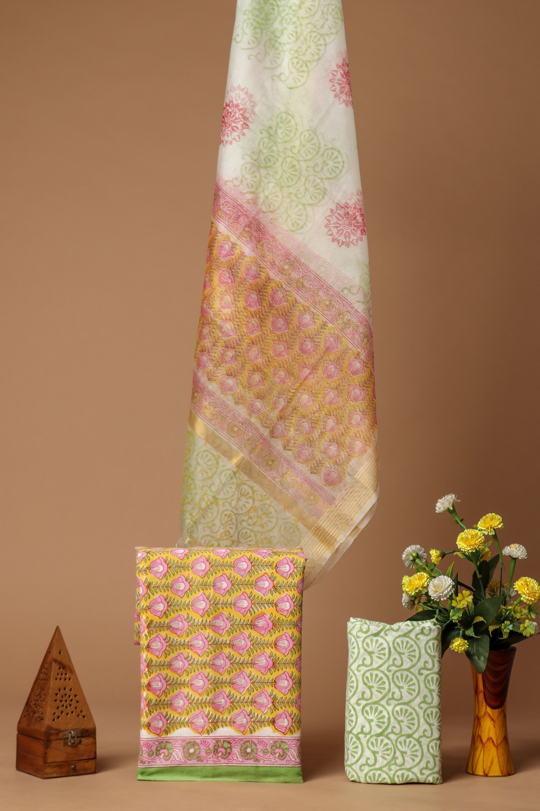 Jackyll Special handblock printed pure cotton suits with kota doriya dupatta.