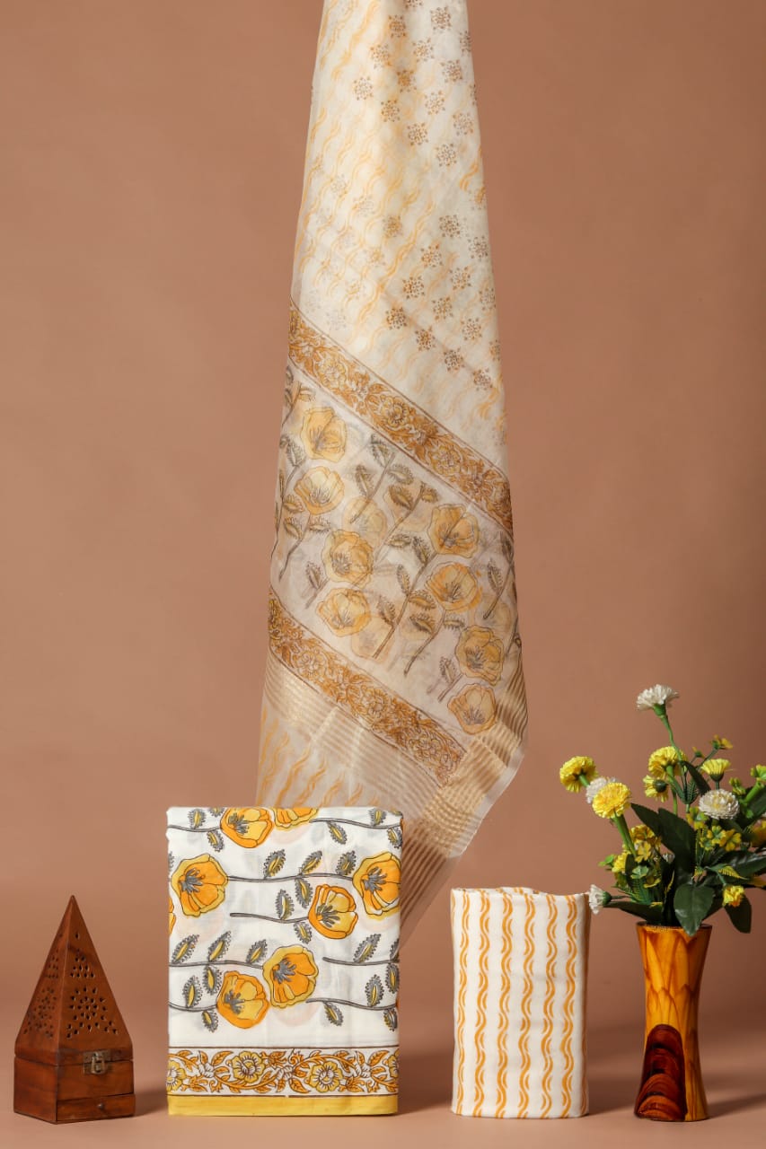 • Stiched hand block suits with kota dupattaStiched hand block suits with kota dupatta