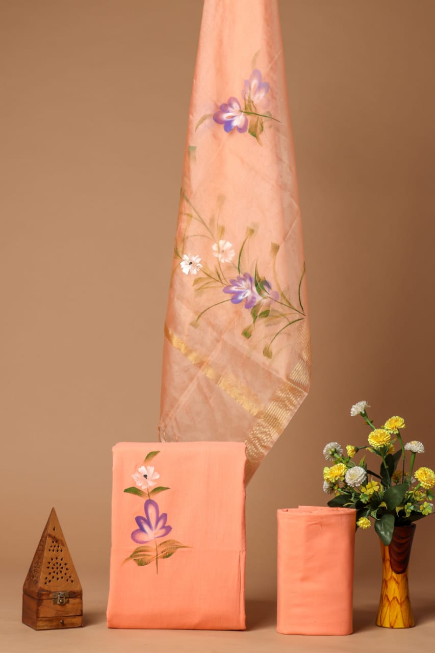• Pure Cotton suits With Chanderi Dupatta