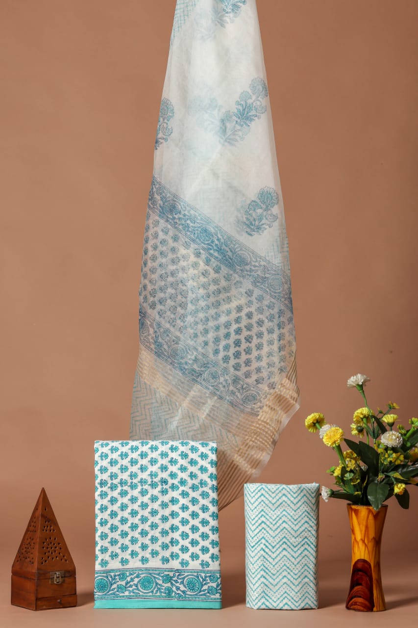 Jackyll Special handblock printed pure cotton suits with kota doriya dupatta.
