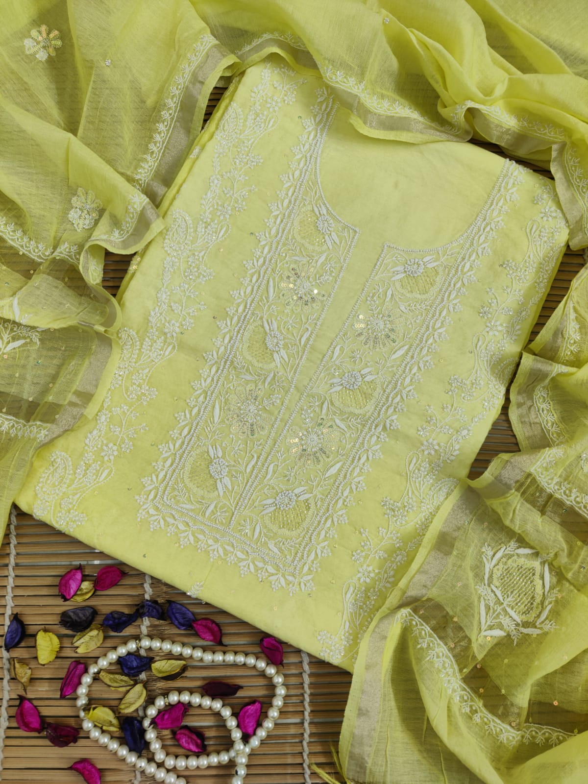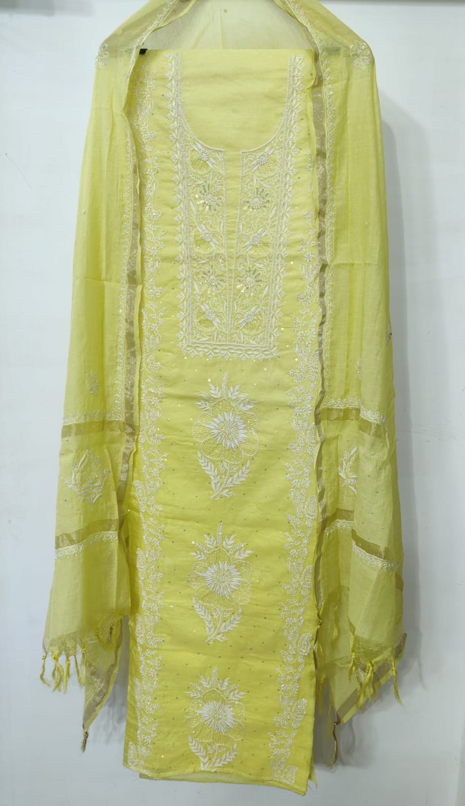 YELLOW Chanderi cotton Fabric superfine Chikankari handwork kurta dupatta set heaving intricate Chikankari embroidery